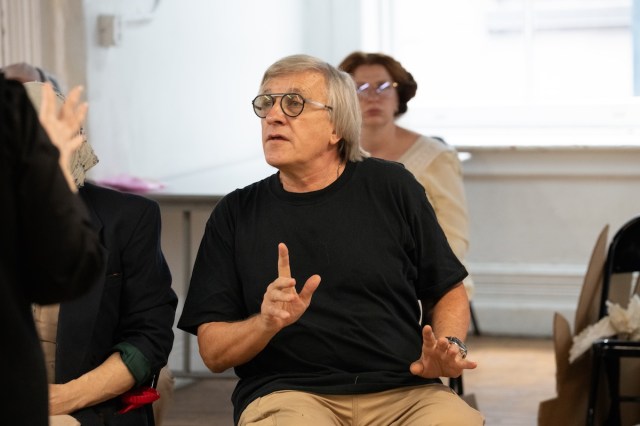 Dmitry Krymov was on his feet following a recent run-through of his new adaptation of Anton Chekhov’s Uncle Vanya, which will premiere at La MaMa’s Ellen Stewart Theatre March 28-April 12. Seventy-one years old and into his fourth year of exile in the United States, the laureled Russian director exhibited no signs of fatigue as he bounded across the rehearsal room, delivering a torrent of Russian notes to a mostly American cast (Tatyana Khaikin, producer of Krymov Lab NYC, live-translates with a speed and confidence that would put most UN translators to shame). But he has plenty of reasons to feel exhausted. This cozy studio in downtown Manhattan is certainly not where he envisioned himself back in the winter of 2022, when he had nine productions simultaneously playing in Moscow.