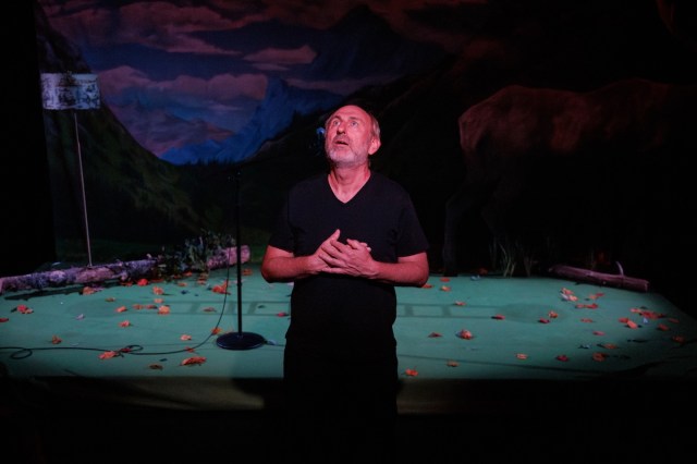 David Cale has a story to tell, and you better have a seat, because it’s a good one. The writer of solo plays like Harry Clarke and Sandra (both performed by other people) personally takes the stage of the Bushwick Starr for the world premiere of Blue Cowboy, an intimate tale of unexpected romance in the American west.