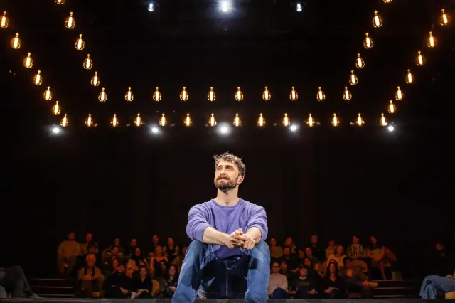 It helps to have Radcliffe as our guide, bringing reserves of energy and charm to the onstage musings and proving to be a nimble improviser during his interactions with audience members. (Some of those audience members sit on a stage that approximates the in-the-round arrangement of previous smaller productions; Vicki Mortimer is credited with both set and costume design). Plus, whether intentional or not, our association with Radcliffe as the original onscreen Harry Potter brings an additional layer of poignancy to the show’s chronicle of a youth attempting to work through his evolving impressions of sadness and death as he grows up. But even Radcliffe’s seemingly effortless charisma can’t entirely disguise a shallow, generic feeling at the heart of Every Brilliant Thing. For all its noble intentions, this mixture of TED Talk, improv, and interactivity adds up to little more than a glorified “it gets better” homily.