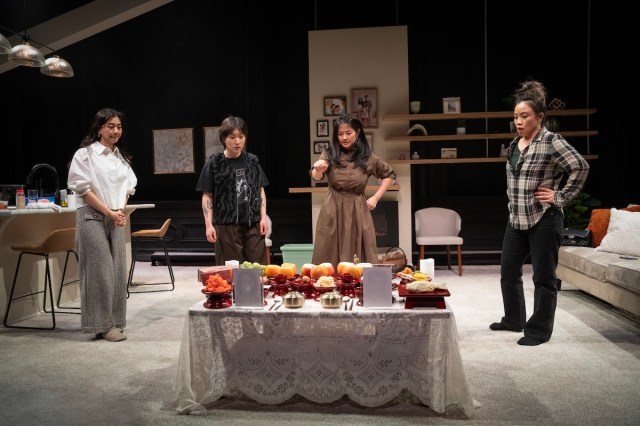 As they arrive, they quickly fall back into what we assume are the battle lines they drew as children. Though perfectionist Grace is giving big-sister energy, Tina (Tina Chilip), a motorcycle-riding wild child, is the oldest. Her natural ally is Brenda (Christine Heesun Hwang), a struggling theater director who sees her family as little as possible after escaping to New York. Grace’s second-in-command is Elizabeth (Laura Sohn), who works in finance and uses money to make problems go away. Over the course of a very late night, they recreate the traditional Jesa with rituals they barely remember.
