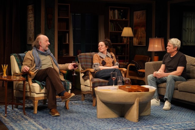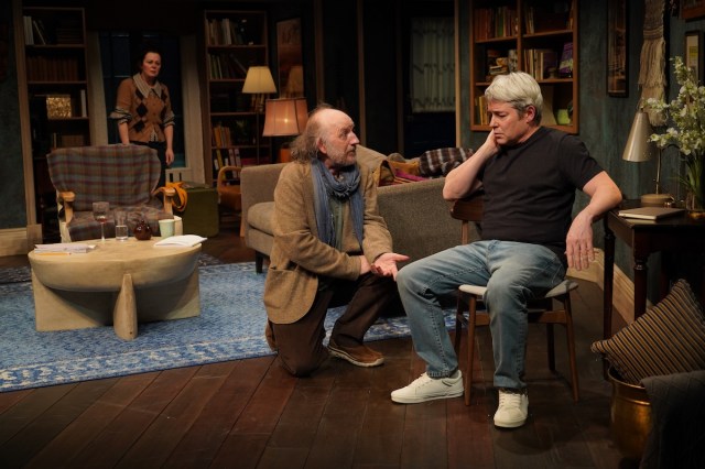Baker’s just perfect, though, as the stuffy would-be mediator between playwright and actor: he seems to blend into his pretentious living room, handsomely decked out with National Theatre-y paraphernalia by Charlie Corcoran. And Hughes carries Ruth’s boiling fury persuasively, entering in a blaze of malice—she’s just come from a car crash that left her mother hospitalized—intermixed with giggly glee at meeting the film star who’s agreed to take on her play.