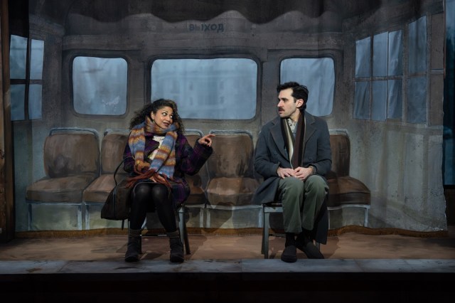 It’s 1992 and 25-year-old Evgeny (Adam Chanler-Berat, speaking in the stilted formality of a Chekhov translation that is for readers only) is a child of privilege adrift in the brave new world. The son of a high-ranking Communist, he had just started his own ascent in the party right as the Soviet Union collapsed. At the top of the play, he’s working for his father’s startup protection racket, and it’s obviously not going well.