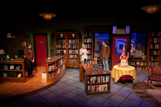The New Jersey Repertory production of Michael Walek’s sweet little drama The Bookstore, now performing off-Broadway at 59E59, is similarly preoccupied with literature and mortality. It’s set in the tiny West Village bookstore owned by Carey (Janet Zarish). She runs the shop with the help of unpublished novelist and Yale grad Abby (Arielle Goldman) and Brittany (Ari Derambakhsh), a far less vocal (but infinitely more observant) amateur writer.