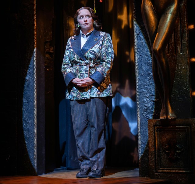 David I. Reynoso’s costumes lean heavily on vinyl and mesh, the kind you could easily obtain for yourself (I clocked Evans wearing the “roid reaper” top from Strapp Metal). Also for Evans, Alberto Alvarado has designed a wig that suggests a mashup of Charles II and Sharon Stone in Basic Instinct, which feels like a perfect encapsulation of Frank’s personality. It looks like a really good amateur staging starring an extraordinarily talented shadow cast.